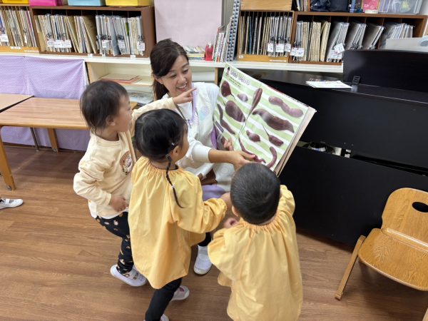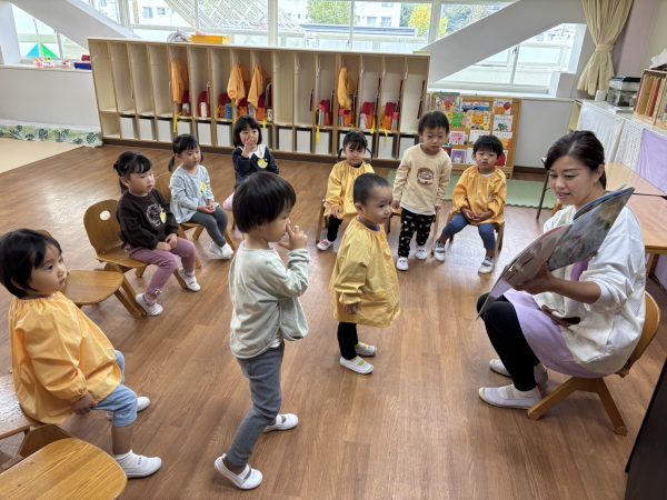 先日お兄さん、お姉さんたちは畑でさつまいも堀りを行いましたが、なんと幼稚園でもさつまいもが出来たので、ひよこ組でさつまいも堀りを行いました。