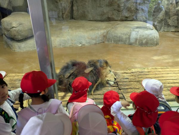 ガラス越しに見えるライオンを目の前に子供たちも大興奮でした。