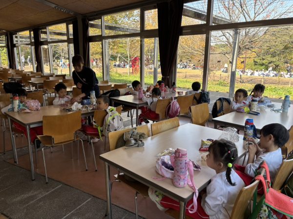 年長組とわかれて、年少組は『ころころ広場』で昼食です。