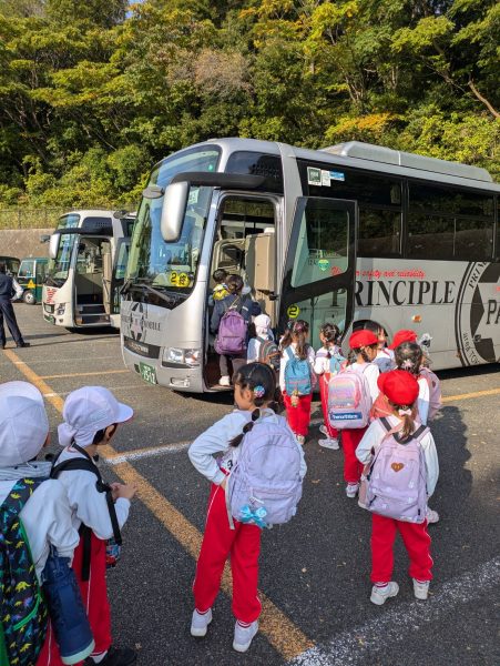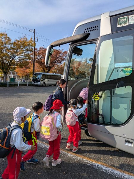 年長組もバスに乗車し幼稚園に向けて出発です。