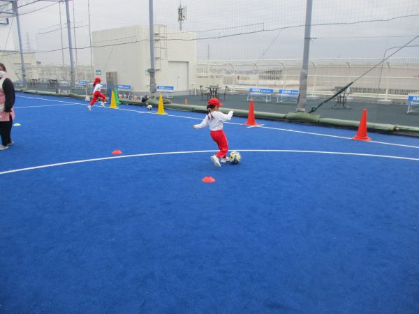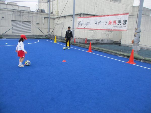 ボールを使って準備体操をしたり、シュートの練習もボールを投げてから蹴るのと、ジグザグにドリブルしてからシュートをするなど、たくさん教えていただきました。