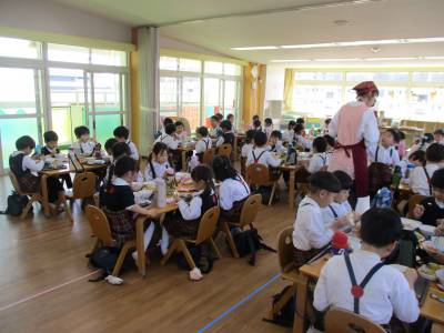 2月27日(木) 一緒にお昼ご飯を食べました。(年中・年長)